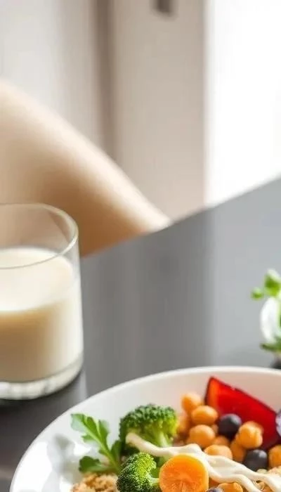 - Кальций: Обогащённое растительное молоко, тофу (с кальцием), зелёные листовые овощи (брокколи, кейл), кунжут, тахини.