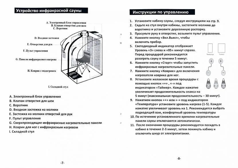 - не превышать рекомендованное время длительности процедуры (30 минут), непрерывно находясь внутри кабины;
