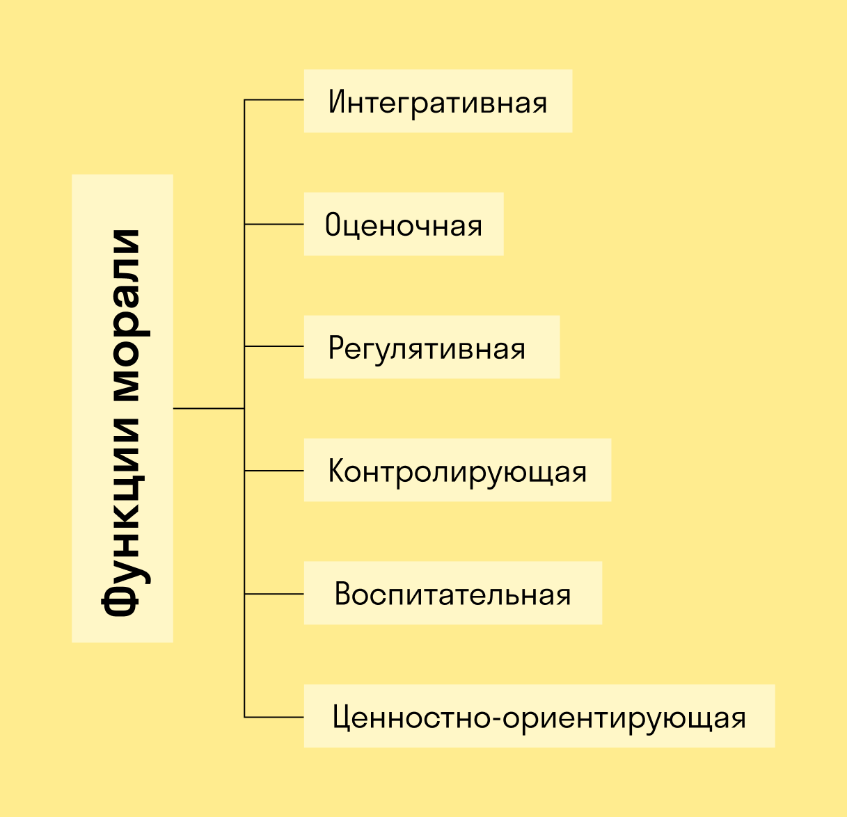 Регулятивная функция морали — определяет деятельность с учетом потребностей окружающих людей, всего общества. Мораль устанавливает общественные нормы, которые необходимо соблюдать, накладывает санкции и поддерживает правила поведения.