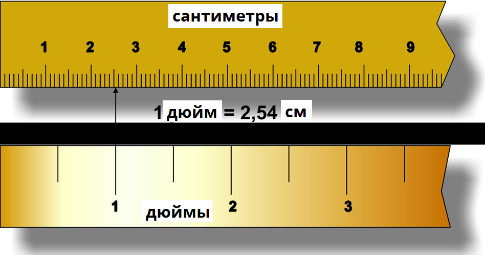 - Inch (2.54sm) – дюйм. Примерно равен половине длины спичечного коробка.