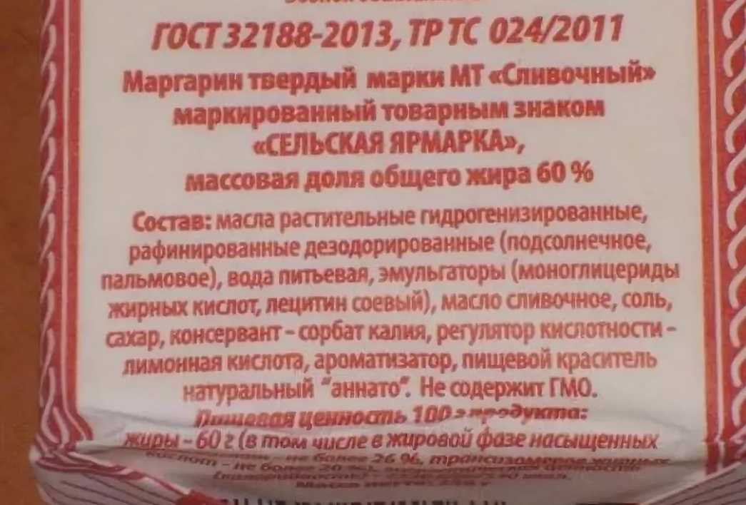 Самым качественным является тот продукт, на упаковке которого имеется маркировка «Р 52179-2003» и символ ГОСТ. Такой товар обязан быть завернутым в фольгу, она защищает его от воздействия посторонних запахов, влажности и света. На этикетке также должна присутствовать информация о составе маргарина. Отдавайте предпочтение тому товару, который не содержит ГМО. В жир добавляют краситель, от которого напрямую зависит оттенок исходного продукта. Если молочный продукт обладает желтым цветом, то он имеет витамины, белый оттенок свидетельствует о том, что товар не окрашен, а содержащий красители товар будет иметь светло-желтый колер.