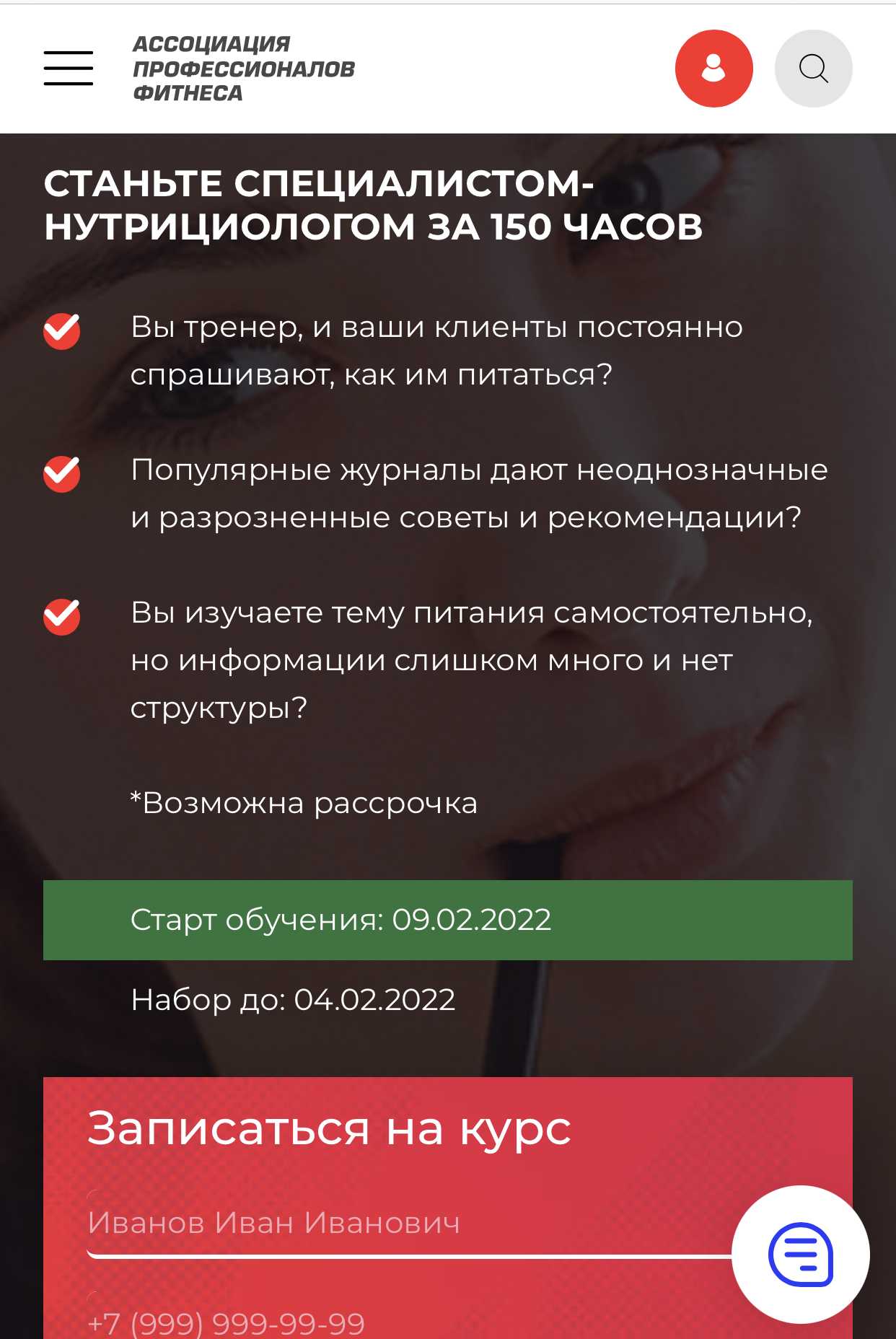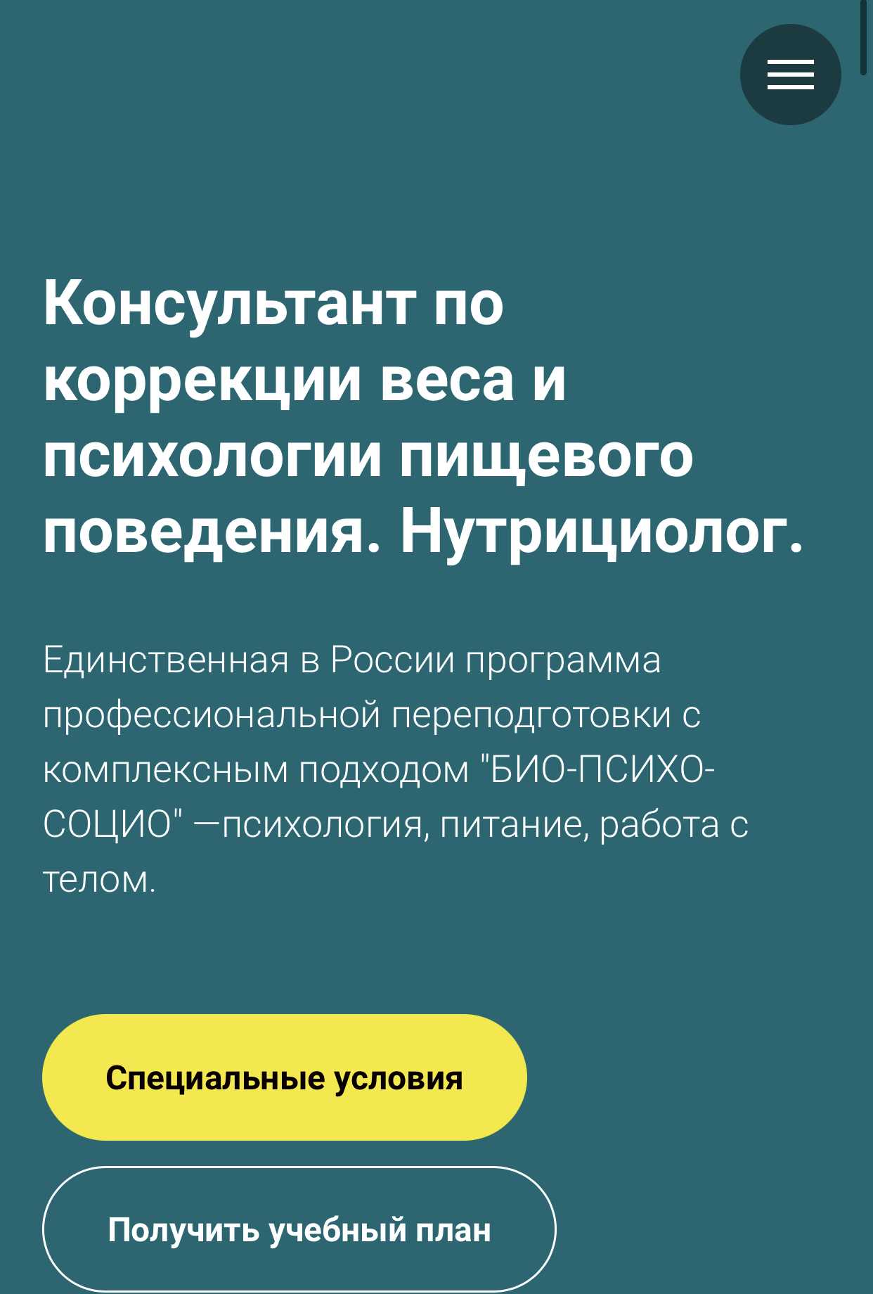 Очередной представитель нашего обзора именует себя громким титулом «академия» —причём, для пущей важности, на английском языке (как бы с намёком на статус международного масштаба). Дистанционный образовательный курс по нутрициологии и диетологии рассчитан не только на врачей, но и на спортсменов, студентов, блогеров, работников салонов красоты, молодых мам и всех, желающих «освоить новую востребованную профессию»