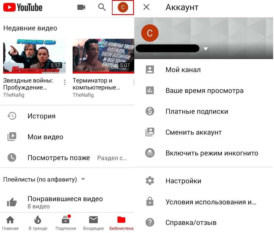 - На телефоне тоже откройте клиент Ютуб и вверху списка предлагаемых к просмотру видео найдите клавишу как на картинке;