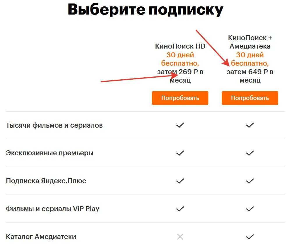 В чем подвох? Для получения доступа к сайтам, требуется вводить данные платежной карты. Сама подписка может предоставляться БЕСПЛАТНО на период от недели до нескольких месяцев по акциям. А вот за её продление будут сниматься деньги 269 и 649 в зависимости от пакета.