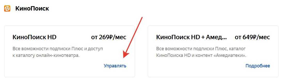 - На Яндекм.Плюс или в личном кабинете Яндекса на странице управления подписками.