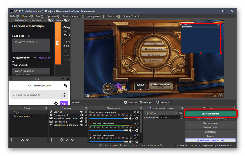 Отметим, что почти все действия, описанные выше, являются только основными примерами правильной настройки трансляции на Твич. Можете не загружать StreamElements, а вручную изменить каждый параметр при помощи встроенной в OBS функциональности. Нет ограничений и в плане источников — если не хотите, не выводите пожертвования или не добавляйте чат. Все зависит только от ваших желаний и видения того, как должен выглядеть стрим.