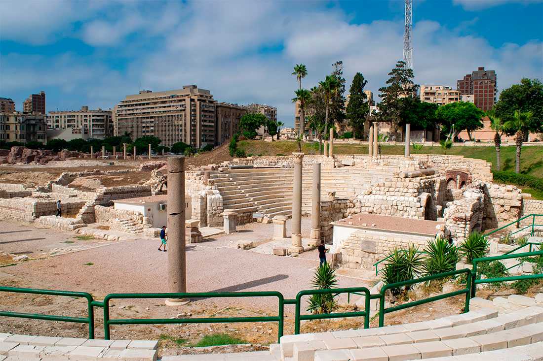 Римский амфитеатр. Относительно неплохо сохранившийся амфитеатр II-IV веков на 800 мест, украшенный мозаикой и галереями. Состоит из 12 рядов, отделанных светлым мрамором, первый ряд, предназначенный для знати, украшен красным гранитом. Находится в квартале Ком-аль-Дикка, рядом стоит мечеть 13 века Наби Даниэль.