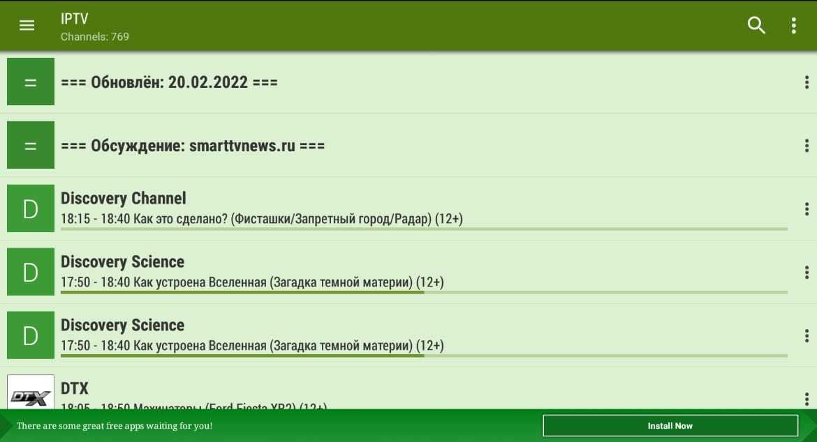 - Если определённый канал перестаёт работать, его можно найти в другом плей-листе.