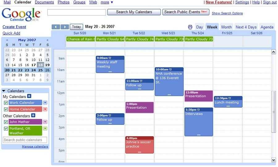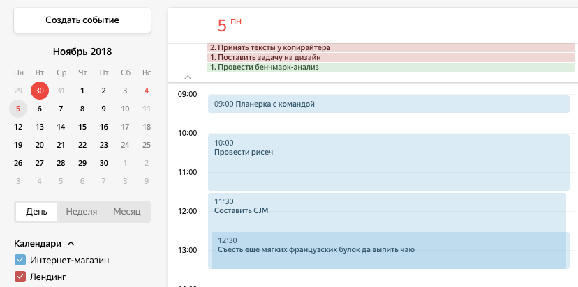 Гугл Календарь позиционируется как планировщик для различных задач. Здесь можно создать специальные карточки, то есть задачи, которые выполняются в определённые дни, согласно индивидуальному расписанию пользователя. Обо всех заданиях, которые приближаются, пользователь узнаёт с помощью уведомлений по электронной почте. Невыполненные и не особо срочные задачи легко переносятся.