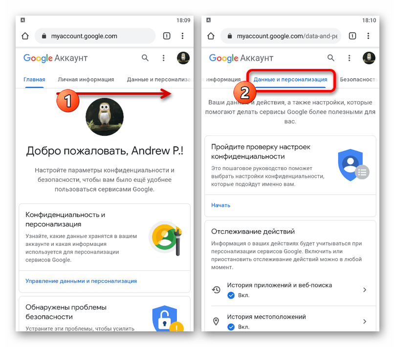 - Воспользуйтесь вышепредставленной ссылкой, чтобы открыть страницу с параметрами профиля в любом браузере, и с помощью верхней панели перейдите на вкладку «Данные и персонализация».