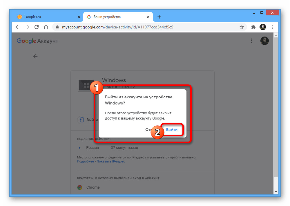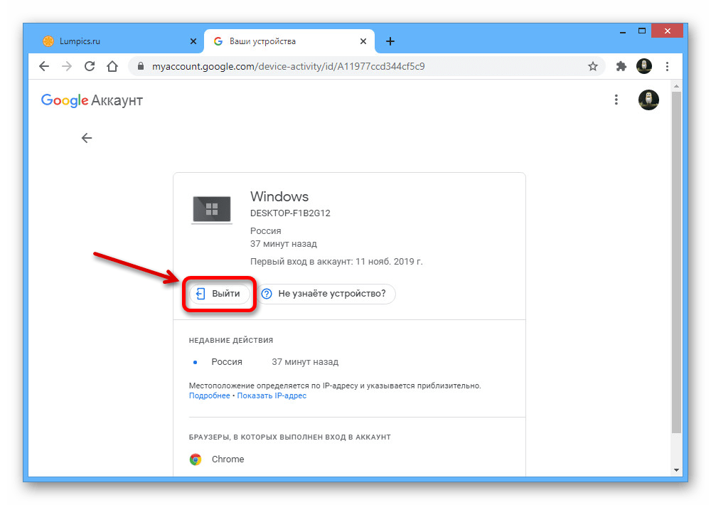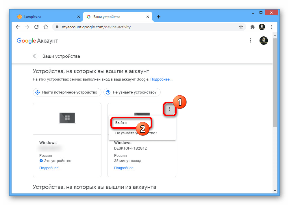 Через браузер на компьютере произвести выход из учетной записи Google на других устройствах можно двумя способами, деактивировав сразу все сеансы или отставив некоторые на свое усмотрение. При этом не стоит забывать и про вариант с отключением каждого нужного девайса по отдельности, используя стандартную возможность выхода, рассмотренную в соответствующей инструкции на сайте.