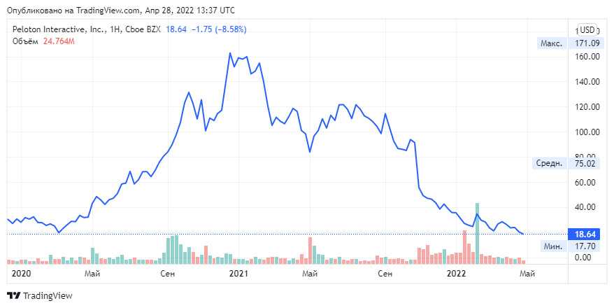 Сейчас у Peloton дела идут негладко. Компания сменила гендиректора и сократила часть персонала. Бумаги сервиса стартапа торгуются ниже цены размещения — по $18,14 за штуку.