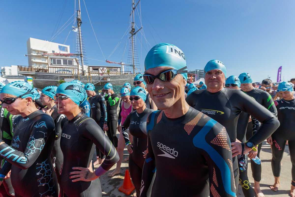 Участники плывут одновременно, им отмечается ограниченная зона водоема. Плыть можно любым стилем, но для быстроты преодоления дистанции спортсмены обычно используют кроль на груди. Можно плыть и под водой, а также отдыхать, стоя на дне и держась за буйки. При возникновении проблемы спортсмен должен поднять вверх руку и тогда ему окажут помощь после чего он выбывает из гонки. Спортсмены во время заплыва надевают плавательные шапочки, также могут быть использованы зажимы для носа и очки. Обязательным условием при температуре ниже 16 градусов является гидрокостюм определенной толщины. Ускоряющие предметы использовать запрещено.