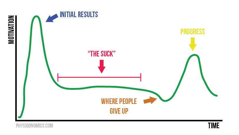 Когда вы начинаете диету и видите первые изменения в лучшую сторону, начинается головокружение от успехов. Вы думаете, что и дальше будет так же просто, мотивации выше крыши. Но это заблуждение: вскоре переходите в следующую фазу, которую я называю «Отстой» – делаете все правильно, но никаких изменений больше нет.