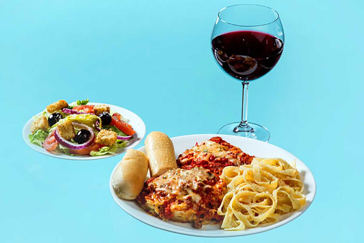 Состав: овощной салат (150 ккал); хлебные палочки (140 ккал); лазанья и паста с сырным соусом 1500 ккал); бокал вина (230 ккал). Наверняка вы знаете, что употребление алкоголя снижает способность к самоконтролю — включая способность контролировать количество съедаемой еды.