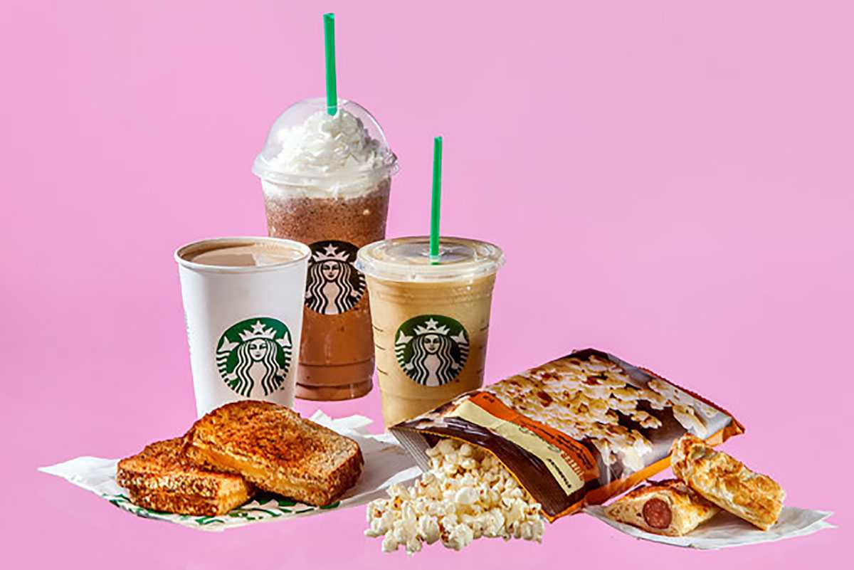 Состав: большой фраппучино (460 ккал); латэ (190 ккал); фруктовый смузи (270 ккал); тосты с сыром (580 ккал); попкорн (125 ккал); круассан с сосиской (410 ккал). Отметим, что каждый из напитков содержит почти 100% дневной нормы сахара — или 300% при употреблении в течение дня.