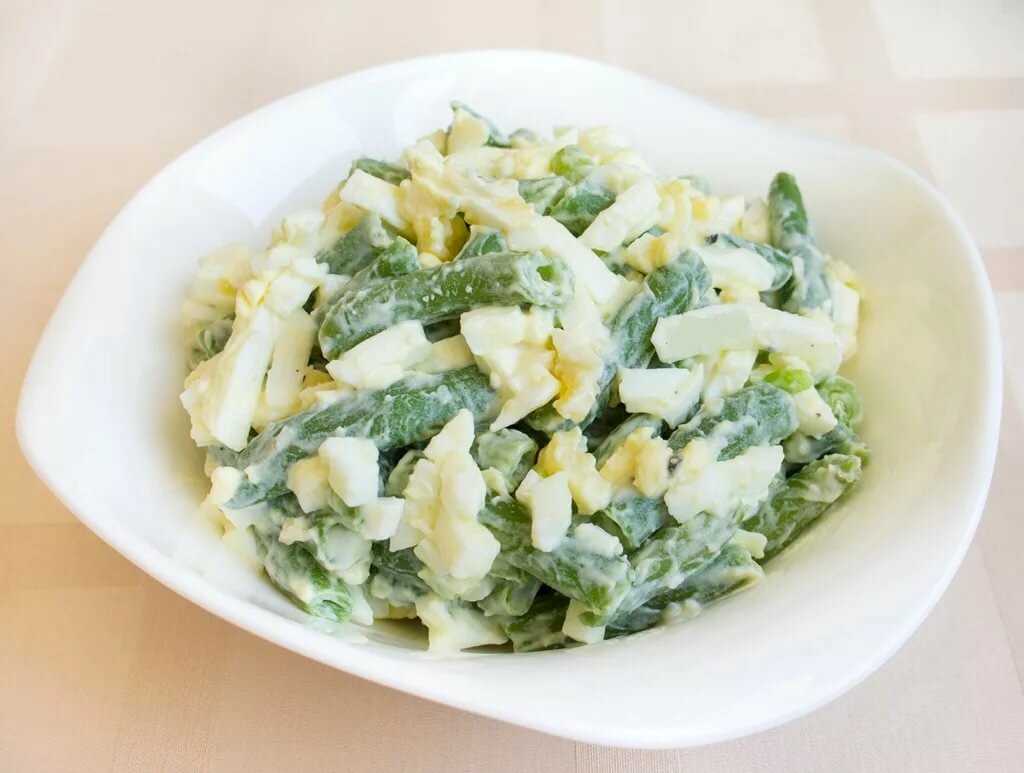Один из классических рецептов стандартного сочетания стручковой фасоли и яйца, которые нередко являются основой многокомпонентных салатов. Эти продукты удачно подчеркивают и оттеняют вкус друг друга.