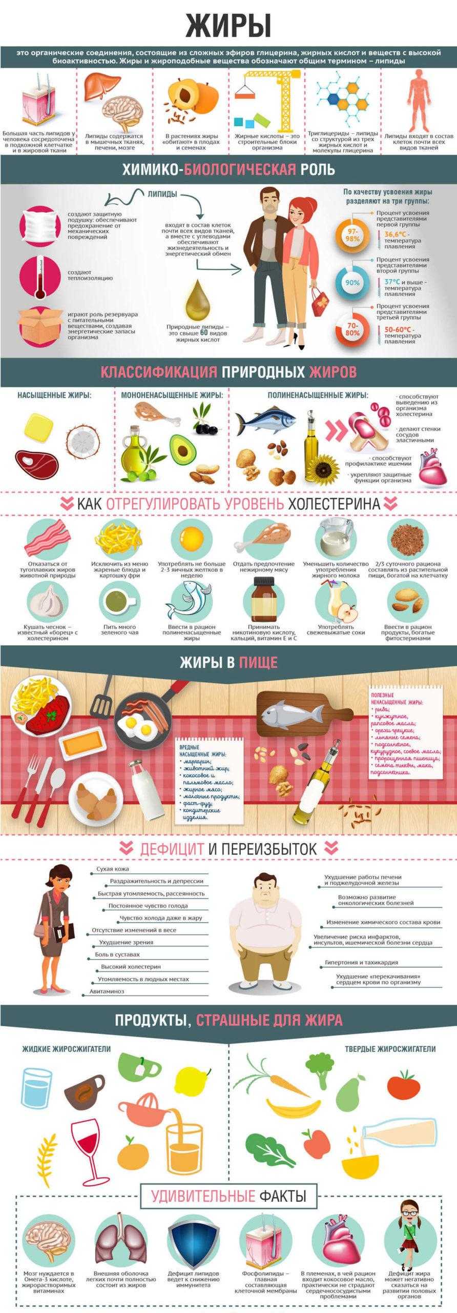 Липиды – это соединения, не растворимые в воде и запасающие энергию. Все жиры являются липидами. Они – источник поступления арахидоновой (превращается в простагландины), линолевой, омега-3 и 6-полиненасищенных жирных кислот, не вырабатывающихся в теле человека.