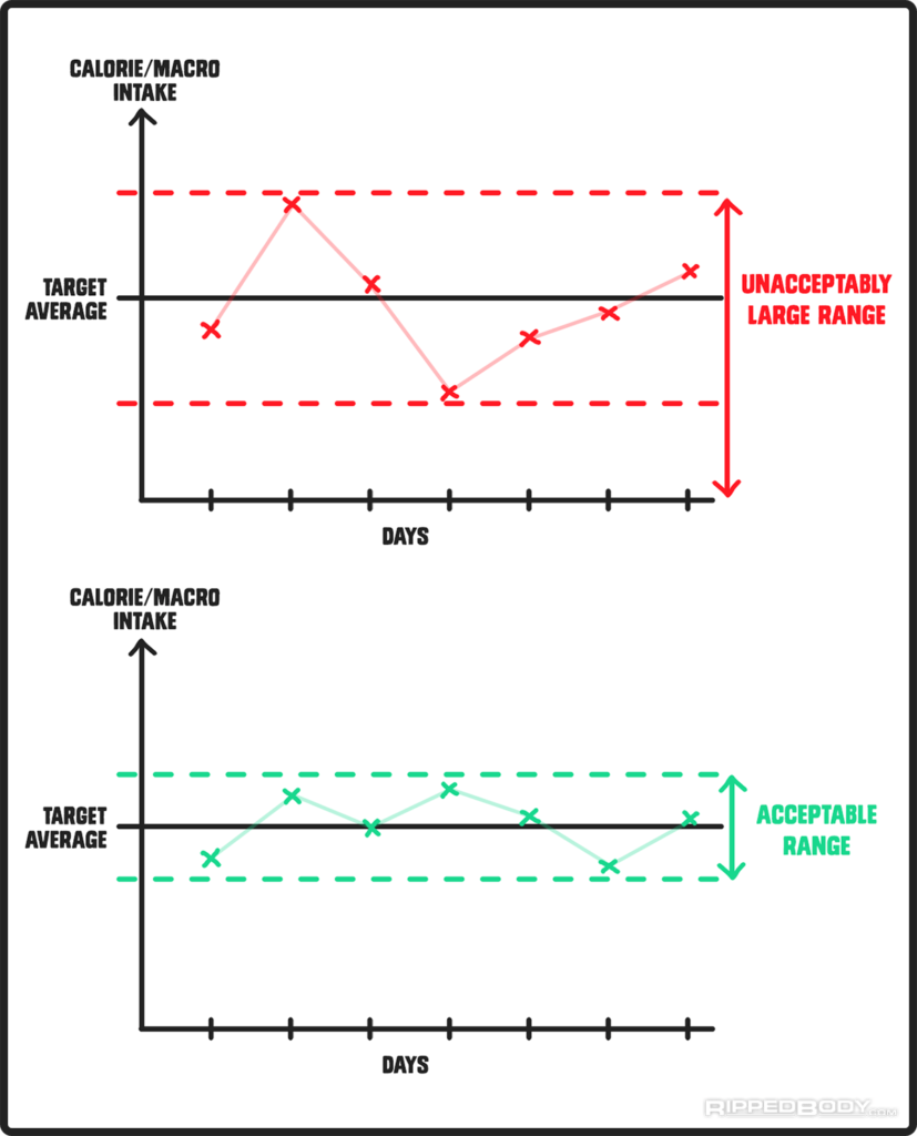 Итак, мы уже сделали жизнь проще, приняв, что неточности допустимы, если мы стабильно держим некоторый диапазон. Надо ли теперь все портить, ставя строгую цель – ровно 67 г жира, 173 г белка и 266 г углеводов каждый день? (мы уже понимаем, куда клонит Энди – прим. Зожника).