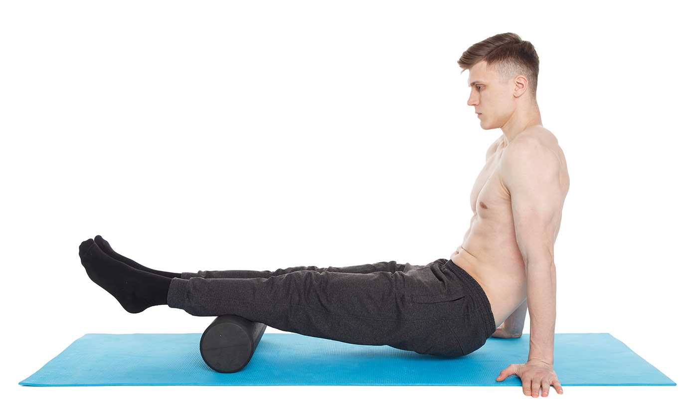 Поместите массажный цилиндр чуть выше подколенной области. Совершайте медленные движения вперед-назад — но не более, чем на 10 см за раз. Постепенно поднимайтесь вверх к ягодицам
