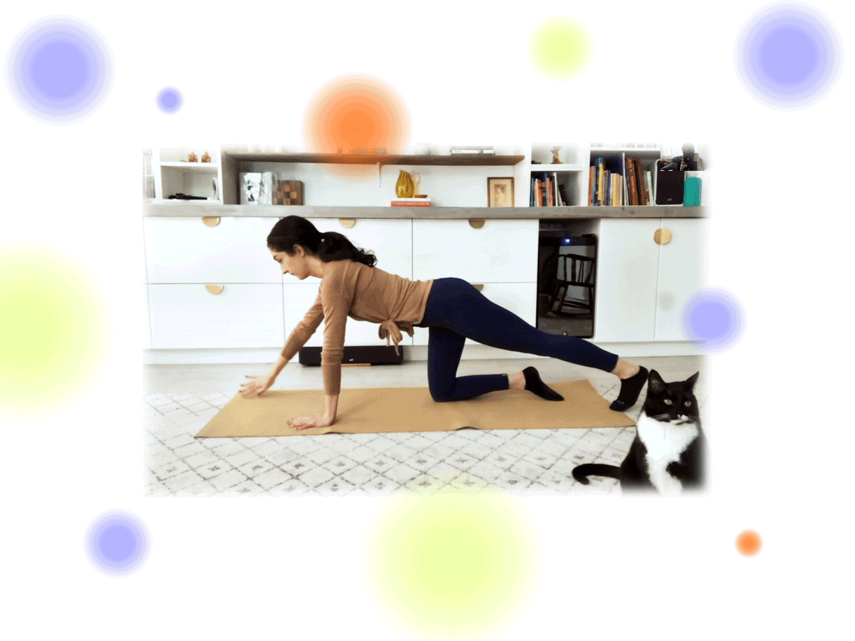 Вам даже не нужно переодеваться в тренировочную одежду – наверняка вы носите дома леггинсы, шорты или спортивные штаны. А если сможете выкроить пару минут на разминку – будет здорово! Сделайте бег на месте или несколько асан из виньяса-йоги. Если нет – не переживайте, в упражнениях ниже и так есть много динамичных элементов.